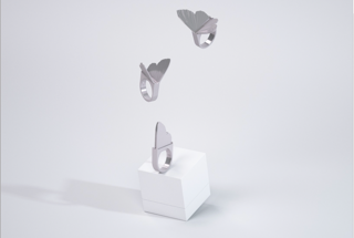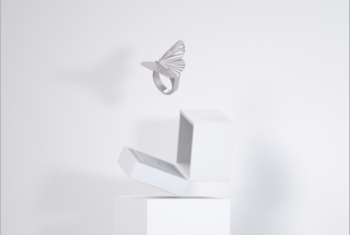 戒指以蝴蝶展翅的方式打开,将美好事物悄悄戴进手中。