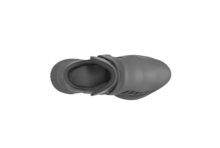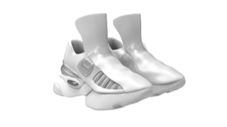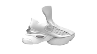 采用白色和银色的上色。后跟处继续是和照明致敬款相同的工艺制作出来的银色镜面效果,从而产生白银金属的效果。侧边椭圆块是一层透明的塑胶。鞋面的皮质换成了漆皮,更富有轻奢的意味。透明材质的绑带和绑带扣灵感来源于水晶。